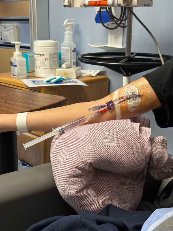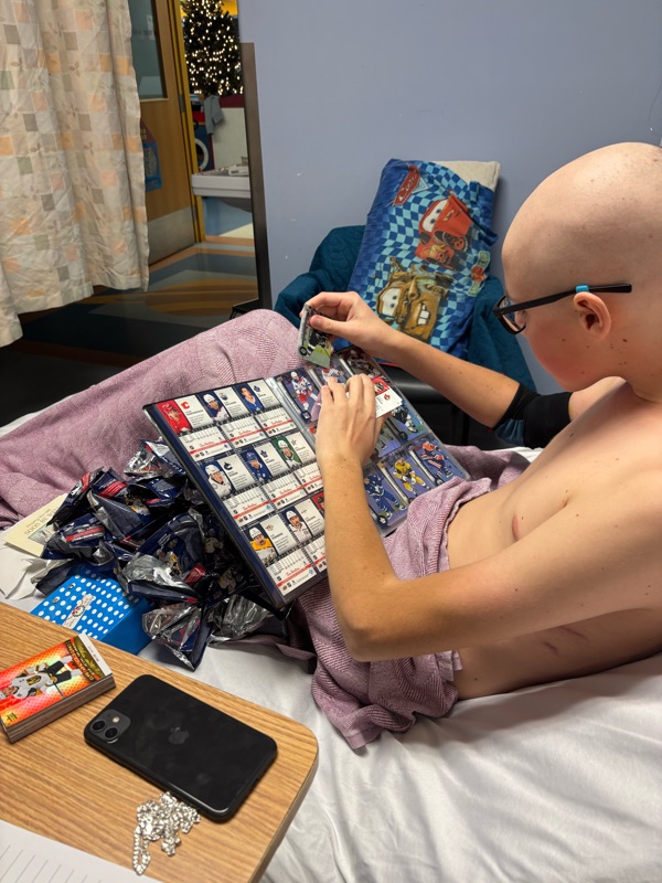Seth has chemo for 3 days, so he had it Saturday, Sunday, Monday and today he'll get his Laplega shot before we go.  I also asked and was granted my request (Praise God!) that he have his PICC line dressing changed and take any bloodwork before we go so we don't have to come back tomorrow for that regular appointment.  Last time he had to come back the next day and it was very hard for him to get up out of bed and he ended up vomiting in the waiting room and just feeling so exhausted.  They did give me a second prescription for the nausea in case the one he has isn't strong enough, but if he can rest at home for the next few days he shouldn't need it. I'm glad that they will do that before we leave so Seth can just sleep until the New Year. The last few days of 2025 will be sleep and chicken noodle soup! Then on Friday they want us to come back in just for blood work. He should be feeling much better by then.