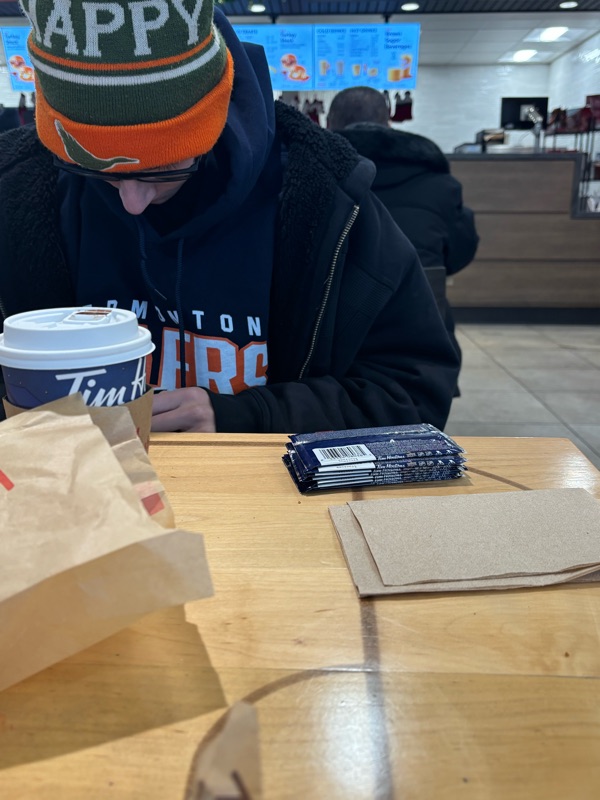 After his appointment we went to Tim Hortons for some lunch (and 15 packs of hockey cards). In case anyone is wanting to do 'a little something' for Seth, he's collecting Tim Hortons hockey cards every chance he gets 😁. He would be so excited if all of our sudden our church mailbox was full of them haha! just a thought! No obligation whatsoever but I know it's nice to know 'what can I do?' This is something he is very into right now and he loves it.