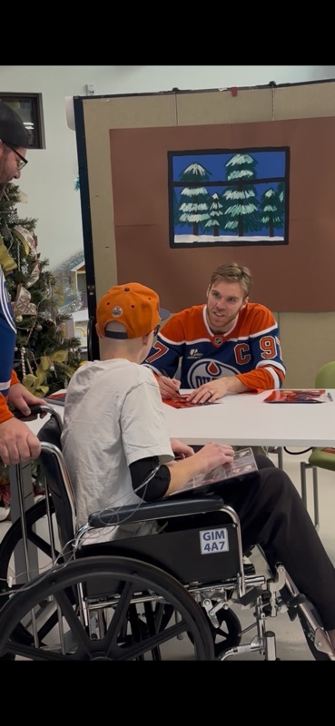 It's been a good couple days! Seth was hoping to go home yesterday and was disappointed when they told him that he had to wait one more night,  but turned out pretty well for him that he didn't because he was at the hospital when a few Oilers came to visit! McDavid, Ekholm, and Nurse came to do autographs and see kids at the Stollery. (Can we say thank you for God's timing YET again!! It's like He's watching over us or something.πŸ˜‰)