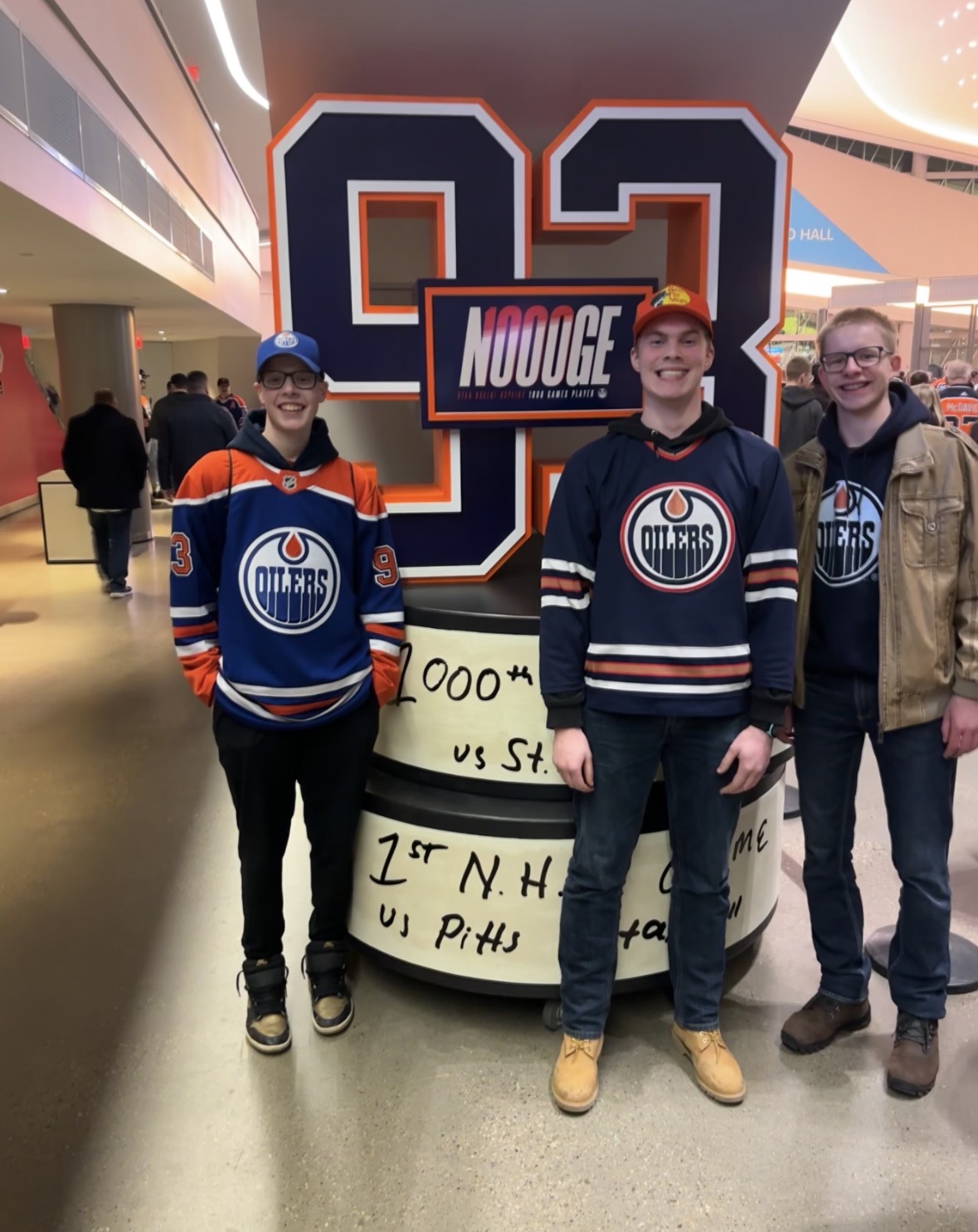 | Seth with Jaren and Jaxon at the Oiler game! (and Bryan, taking this photo). |