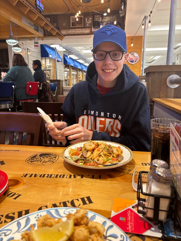 | Morning of a PET scan Seth isn't allowed to eat so by 3pm he was starving. Took him out for some Jambalaya after! |